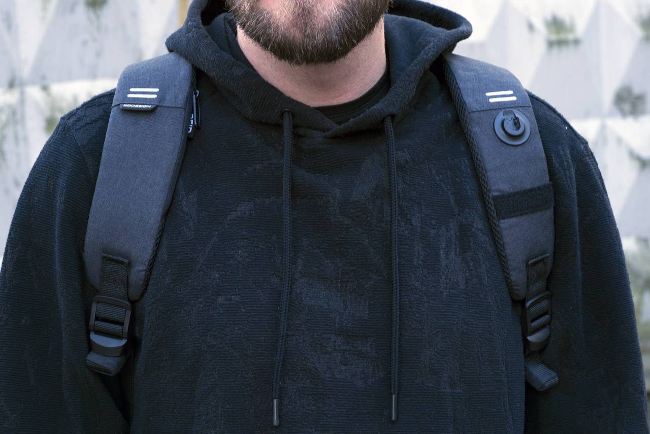 Ну и одна из киллер-фич этого рюкзака, породившая кучу копий на китайских торговых площадках: наличие внешнего USB-порта для подзарядки гаджета. Причем, в Bobby Pro теперь к стандартному USB добавился ещё и разъём USB-C.