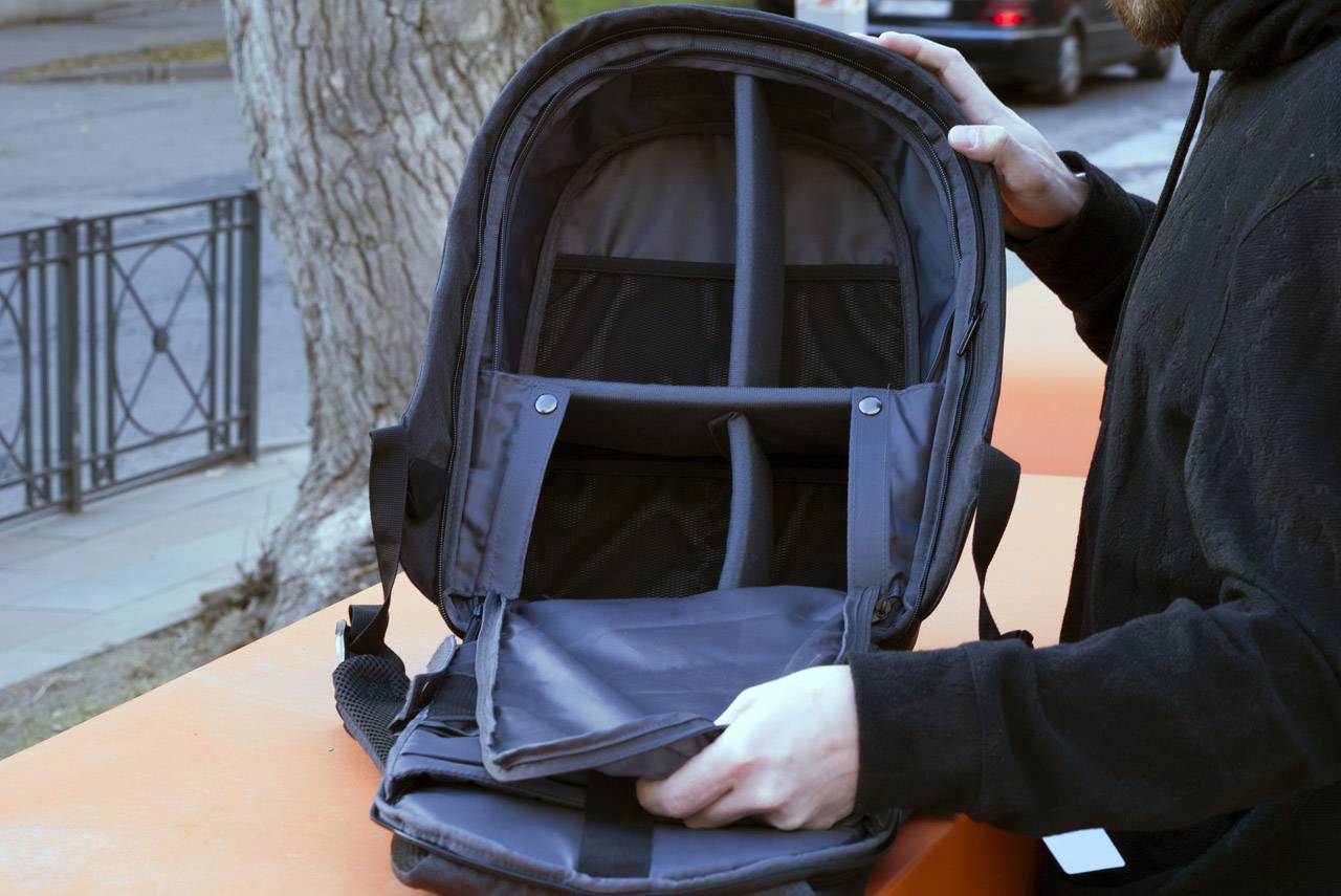 А вот основной отсек создатели проапгрейдили мягкими разделителями, которые позволяют максимально удобно распределить пожитки или фототехнику.