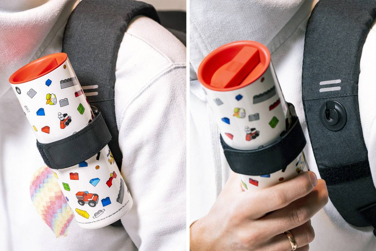 На другой лямке появилось магнитное крепление. В комплекте с рюкзаком есть чехол для смартфона и мягкое кольцо для бутылки, которые надёжно цепляются за это крепление.