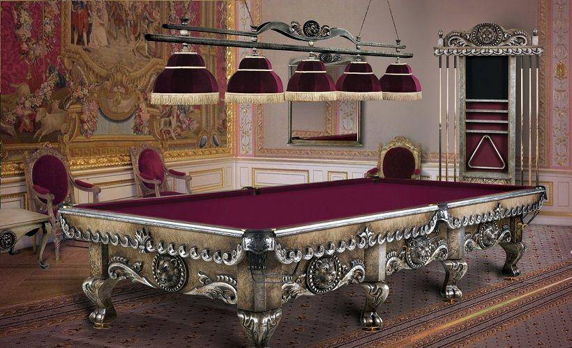 Эксклюзивные бильярдные столы, как правило, изготавливают из дорогостоящих материалов, таких как инкрустирования сусального золота и добавлением пасты