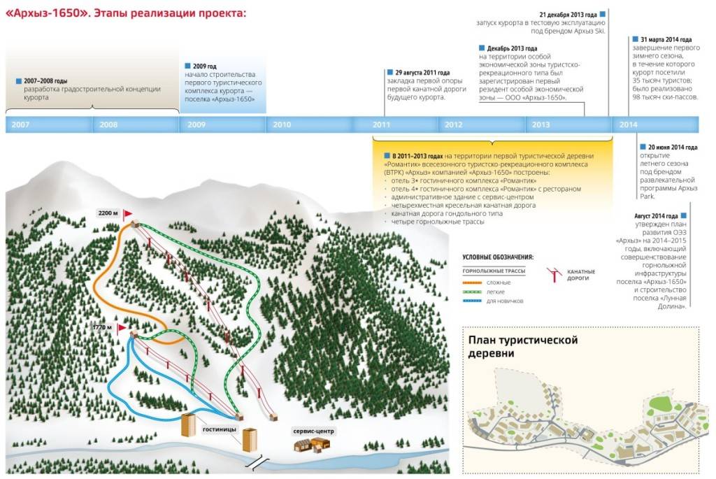 Строительство всесезонного горного курорта Архыз еще далеко от завершения, однако уже сейчас можно с уверенностью говорить о том, что его реализация проходит успешно. Полученный за время подготовки к Олимпиаде в Сочи опыт, затрагивающий все этапы создания современного горнолыжного курорта — от грамотного размещения инвестиций и проектирования до применения новейших технологий прокладки коммуникаций, возведения зданий и сооружений рекреационной инфраструктуры в условиях природных рисков, — позволяет участникам проекта «Архыз» действовать динамично и эффективно. Благодаря этому нынешний «Архыз-1650» является привлекательным местом отдыха и одновременно уникальной строительной площадкой нового типа.