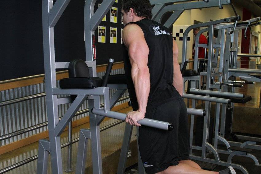 Отжимания на брусьях 5 комплектов из максимального количества повторений Подтягивания с гантелями лежа на скамье 5 комплектов из 10 повторений