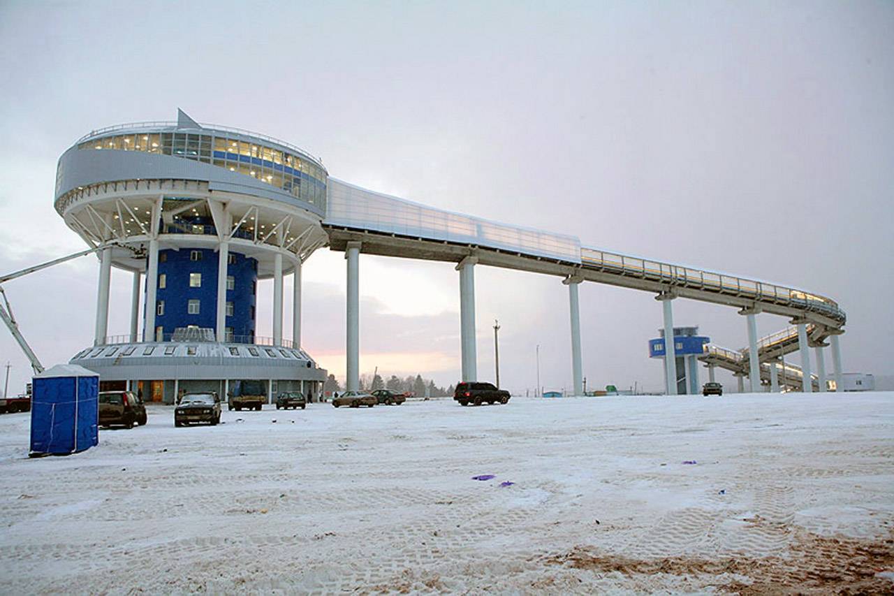 Конструкция желоба – полутруба на бетонном основании, которая покрыла искусственным льдом. Температурный режим регулируется охлаждающей климатической установкой. В бетонные борты вмонтированы датчики движения, фиксирующие положение участников.