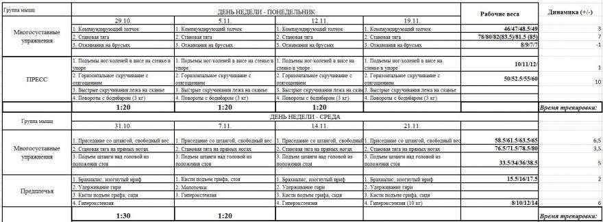 Можно так-же разделить на двухдневный сплит, выглядит он примерно так:
