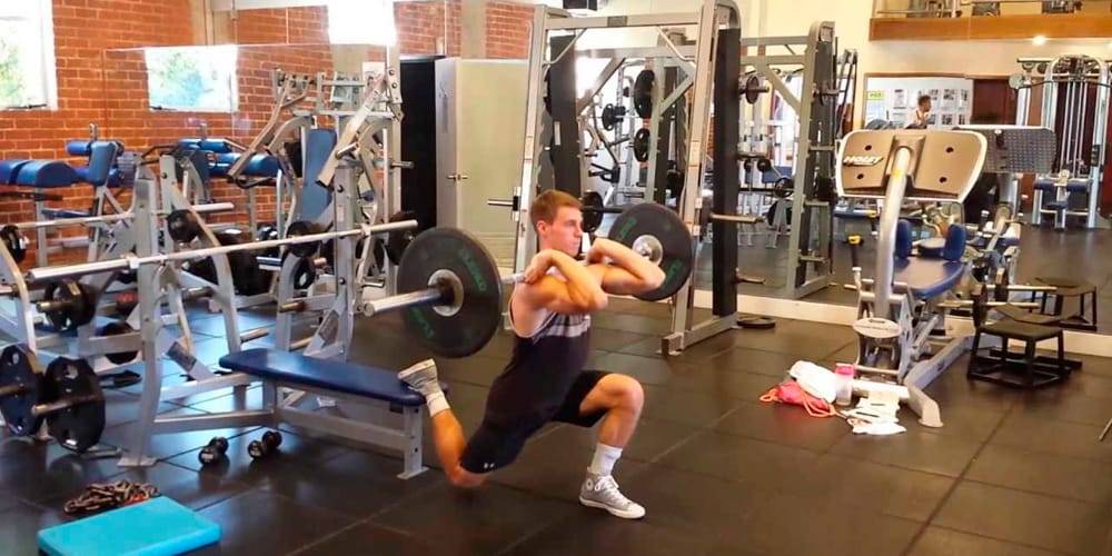 Отличным решением станет выполнение болгарских выпадов со штангой в тренажере Смита. Суть их остается неизменной, но удастся снизить нагрузку на корпус и в частности на позвоночник.