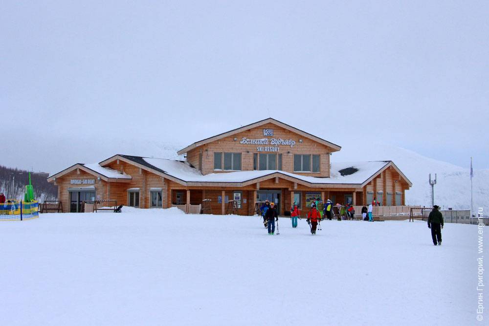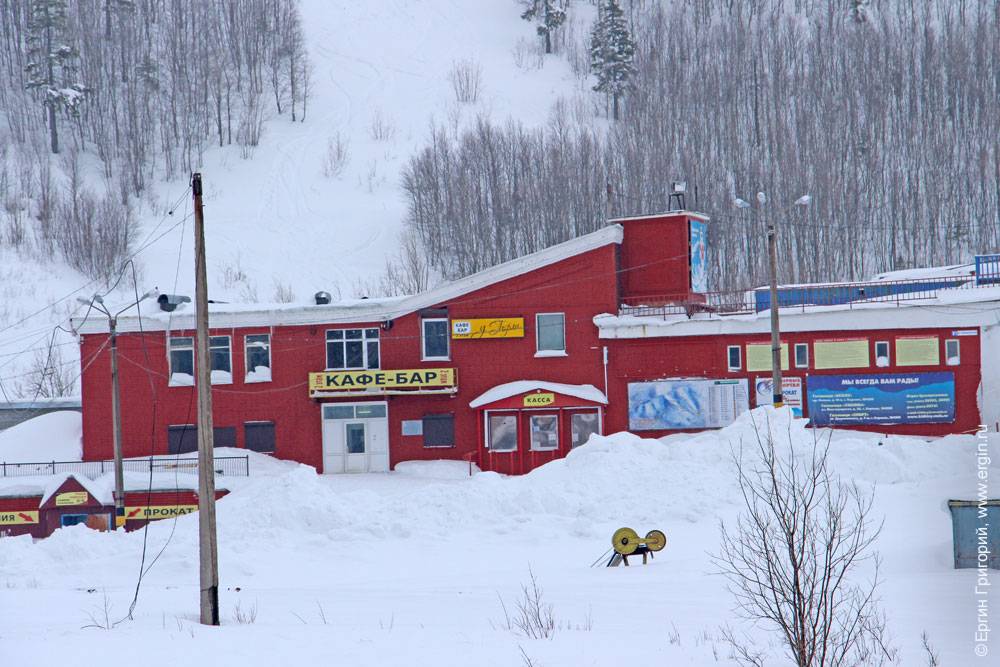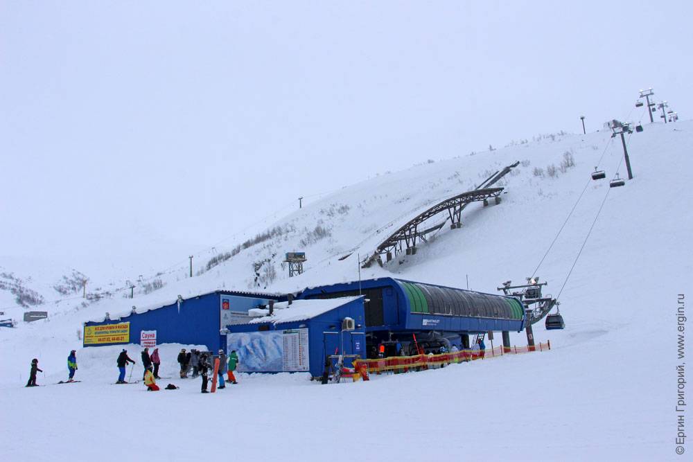 Внутри — прокат снаряжения, магазин, кафе, сувенирка, висит телевизор, на экран которого транслируется видео с вебкамер, расположенных по всем трассам и подъемникам и самая оперативная информация по работе склонов и лавинной опасности: