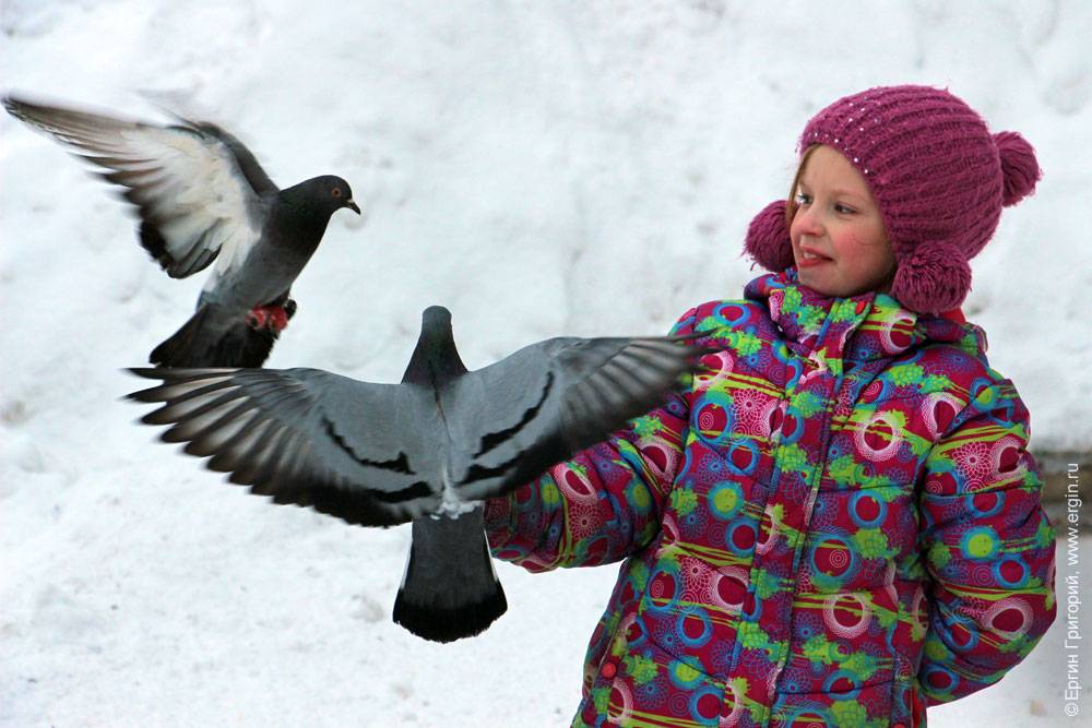 Долго гуглили этого зверя, но находили только в готовом виде:) А это — просто девочка с голубями у магазина: