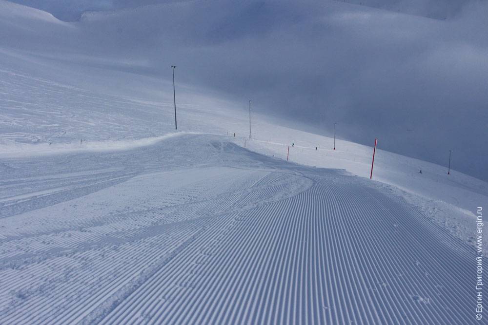 снегоуплотнительными машинами, которые идеально равняют маршруты катания. В пору