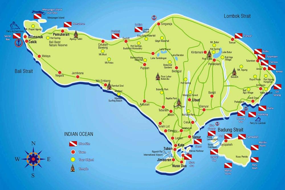 Дайв сайты Бали на карте
