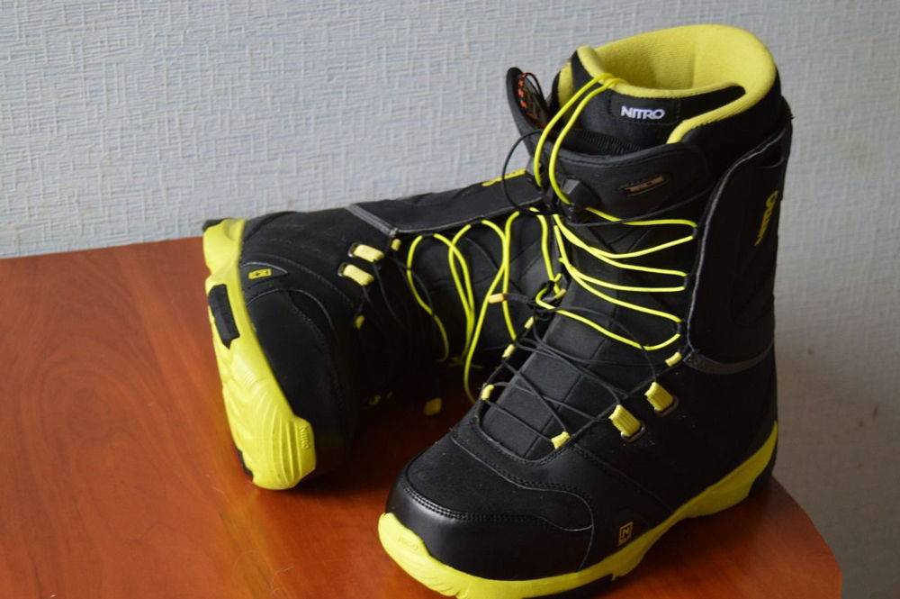 После непосредственно сноуборда это самая важная часть всей экипировки. Ведь никому не захочется подвернуть или растереть ногу из-за неправильно подобранной обуви. Для универсального стиля и для новичков подбирают ботинки средние по жёсткости, для скоростного спуска — максимальной жёсткости. Жёсткая обувь понадобится и для фристайла, а для джиббинга, наоборот, мягкая. Лучше, чтобы обувь имела дополнительный внутренний сапог. Как правило, он выполнен из такого материала, который при нагревании подстраивается под ваш размер и форму ноги. Не стоит забывать про непромокаемость, возможность «дышать» и отводить пот и влагу изнутри. Нелишним будет и специальная обработка внутреннего слоя антисептиками. При выборе стоит примерить ботинки, походить в них, поприседать и понаклоняться. Вы должны чувствовать себя комфортно в этой обуви.