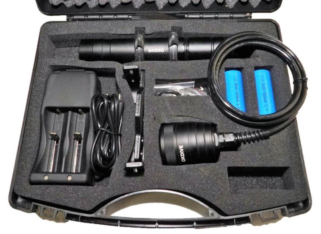 Эта модель российского производства стоит на пятой позиции и рассчитана на самую большую глубину погружения (200 м). Такой фонарь можно порекомендовать тем, кто занимается дайвингом и подводной охотой профессионально. Продается изделие в кейсе, комплектуется аккумуляторами, зарядным устройством, специальным креплением для руки, благодаря которому пловец в толще воды может двигаться свободно. Также Okdive 09S вы можете использовать в качестве ручного фонаря. В устройстве есть магнитный переключатель, посредством которого меняются режимы работы. Их в данной модели три. Если выставить на максимальную мощность, то световой поток составит 1 тыс. Лм. При желании его можно снизить до 500 Лм. Единственный недостаток этого фонаря в том, что при работе на полную мощность заряда хватает всего на четыре часа. Приобрести Okdive 09S можно за 15 тыс. руб.
