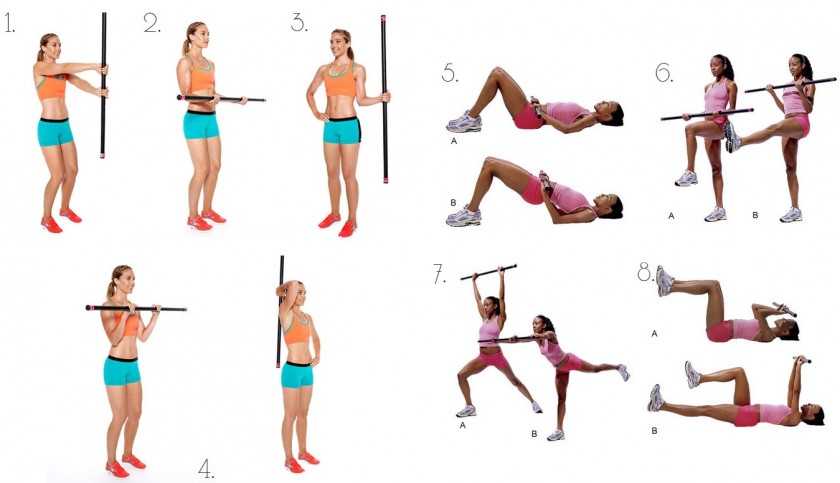 Приведем комплекс упражнений с бодибаром на всё тело: