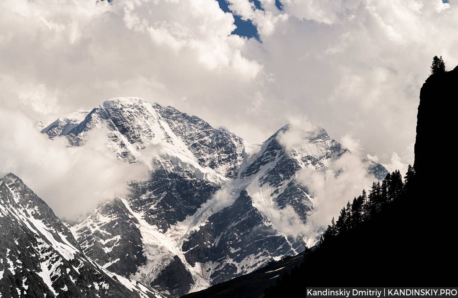 Вторая, меньшая часть расположена на склонах горы Чегет, которая находится совсем рядом. Высота горы 3 км 700 м.