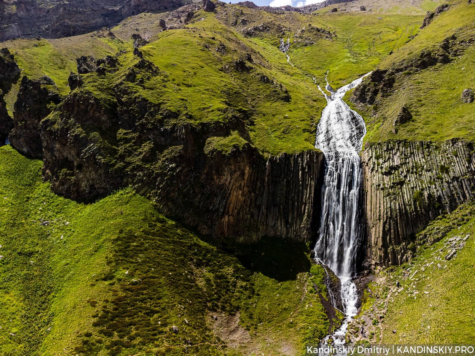Еще один огромный желоб с водой, но чуть менее мощный, – водопад Сакал-Туп. И, наконец, последний из Чегемских водопадов – Каяарты – также назван по имени небольшой речки, впадающей в Чегем. Вода этого притока низвергаются с высоты 50-60 метров, образуя несколько каскадов.