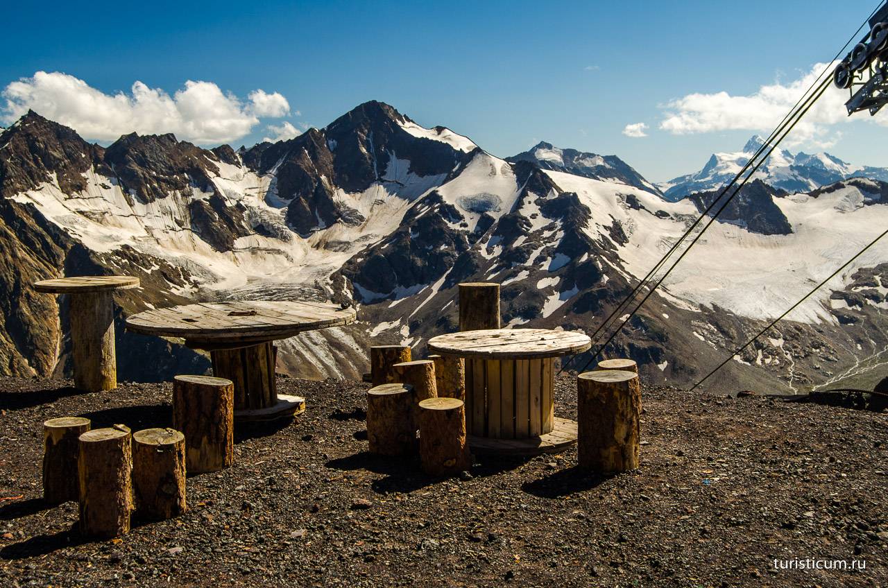 На склоне Чегета находится два культовых места, известные всем альпинистам и горнолыжникам. Одно из них – кафе «Ай». На ровной скальной площадке оно появилось еще в 60-е годы. На русский его название переводится очень просто — «Луна». Круглое здание имеет стеклянные панорамные стены, поэтому в ясную погоду любоваться Эльбрусом можно сидя за столиком.