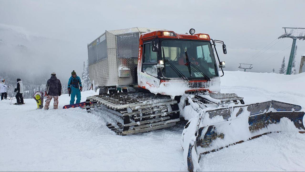 - либо в ложбине снегоходной дорожки подождите свободный снегоход, который поедет назад без райдеров, и попросите вернуть вас к верхним станциям гондольных подъемников,