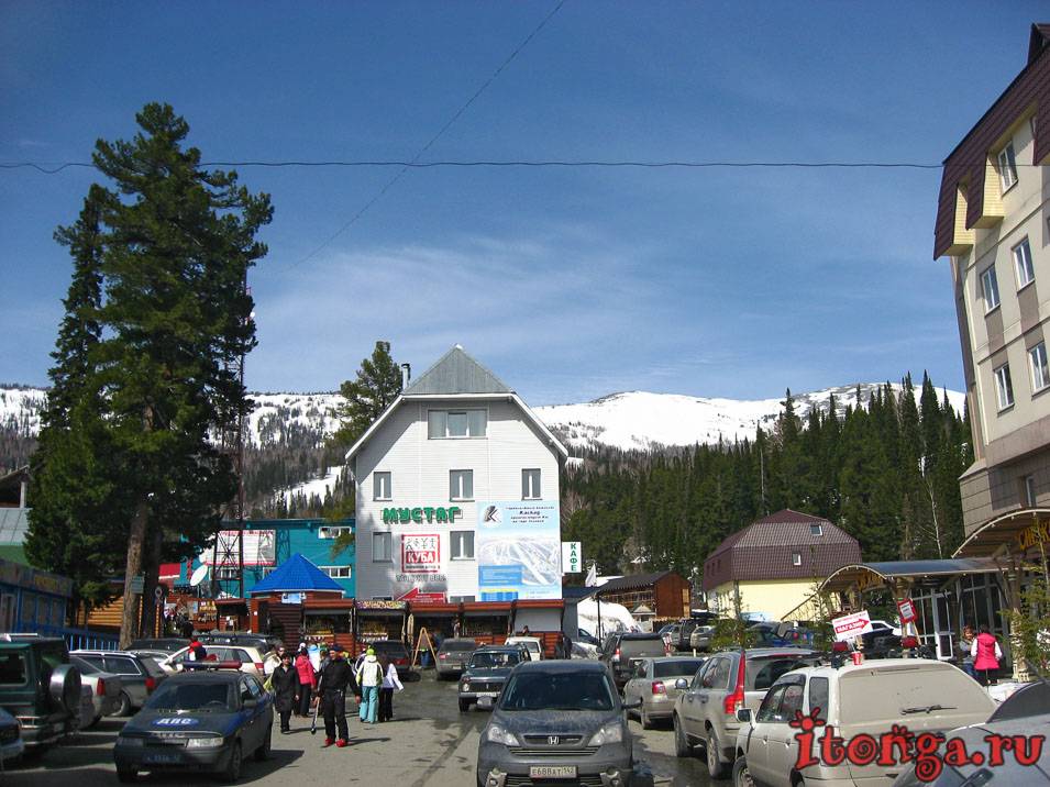 После того как въедете в ПГТ, сворачивайте в направлении улицы Весенней. И спустя 1км горнолыжный курорт Шерегеш будет прямо перед вами.