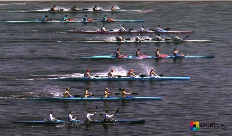 В этом виде спорта, который входит в состав олимпийских игр, гребцы плывут спиной вперед. Для преодоления дистанции используются весла.
