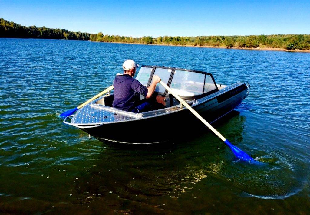 Такие лодки уже комплектуются полноценным транцем, на который можно подвесить тяжёлый мотор. Они незаменимы на больших водохранилищах, где нередко возникает необходимость обловить несколько мест, порядком удалённых друг от друга. Ну и само собой — без моторки на большой реке тоже делать нечего.