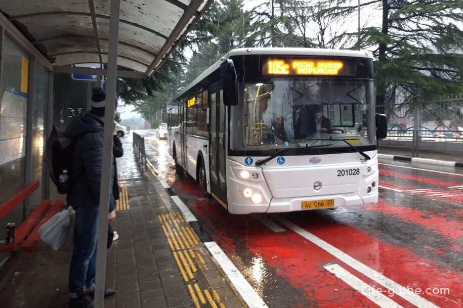 - на общественном автобусе (они отправляются из Сочи, Адлера, аэропорта);