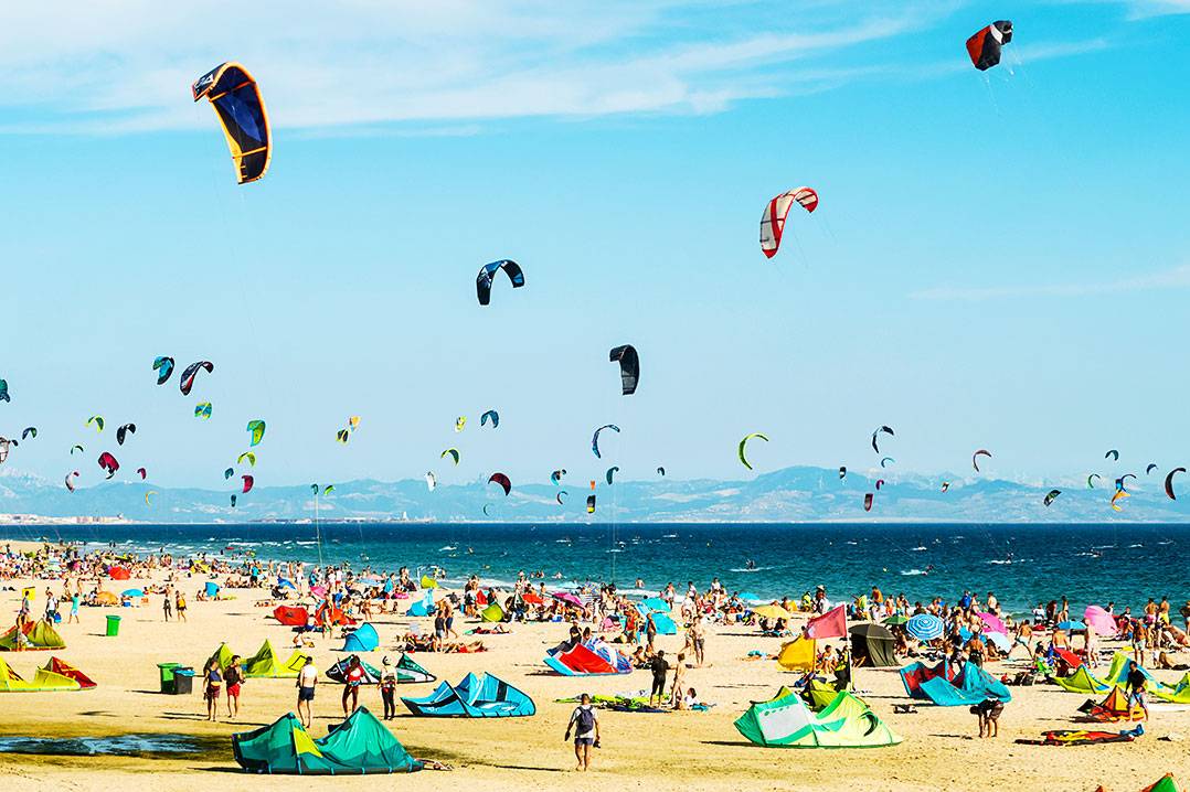 Пляж Тарифа — самая южная точка Испании и место, где встречаются Средиземное море и Атлантический океан. Рай для кайтсёрферов.