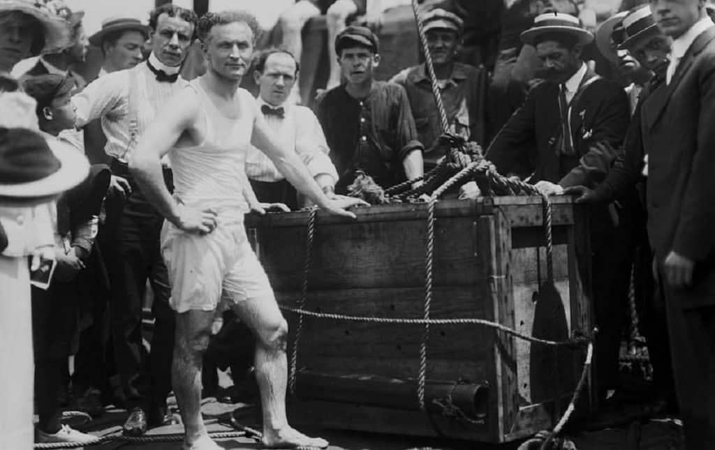 - Гарри Гудини, известного иллюзиониста, который в ледяной воде сумел освободиться от наручников и выбраться за 8 минут, причем никакого специального снаряжения у него не было.
