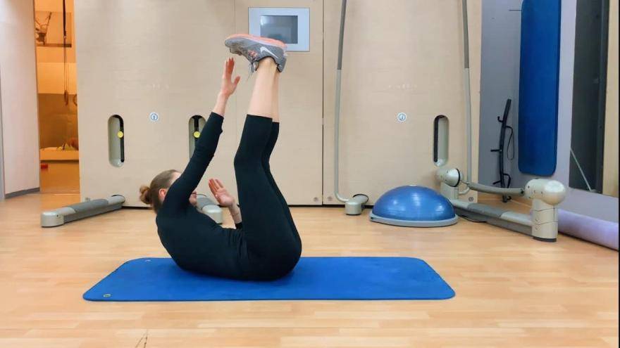Исходное положение: лечь на спину, оторвать от пола плечи и ноги. Ноги на высоте примерно 30 см над полом, носочки вытянуть. Руки немного приподнять над полом, вытянув вдоль тела ладонями вверх, или положить на пол. Если тяжело держать равновесие, руки можно расположить под ягодицами ладонями вниз.