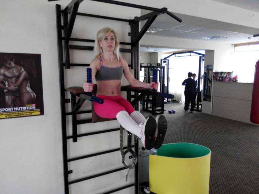- Шведская стенка – с использованием турника медленно прижимаем к себе согнутые в коленях ноги – положение висим на турнике;