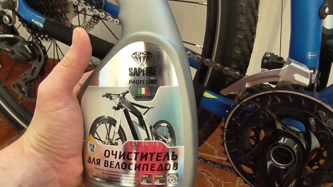 Мойка велосипеда. Необходимо сначала смахнуть кисточкой всю грязь с переключателей, тормозных рычагов и втулок колёс. Вытереть запачканные смазкой узлы велосипеда. Цепь, передние и задние звезды, натяжитель цепи легко отмыть керосином, ацетоном, уайт-спиритом и другими растворителями. Чтобы сэкономить моющие средства и растворители лучше их распылять пульверизатором, а не лить на тряпку.