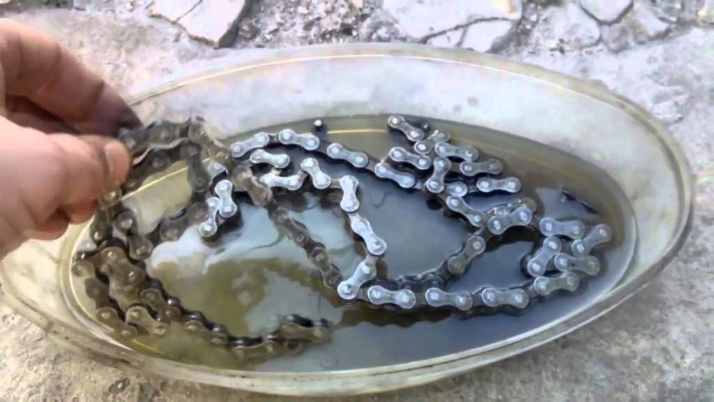 Быстрая чистка — неплохо! Но это лишь передышка между капитальной. Не рекомендуется забывать о ней. Освободитесь раньше с работы, чтобы этим заняться. Снимите цепь и положите в таз с приготовленным очистительным средством и промывайте, пока вода не станет чистой.