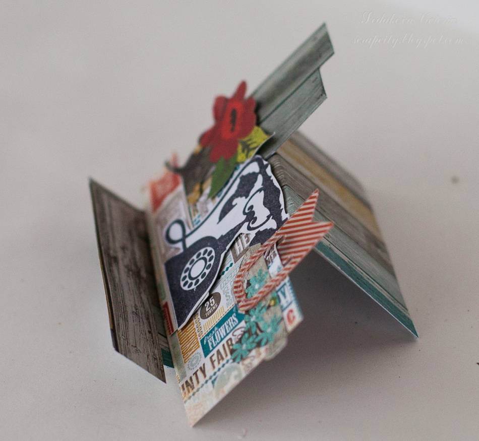 Простая подставка из пластиковой карточки, декорированная в стиле скрапбукинг