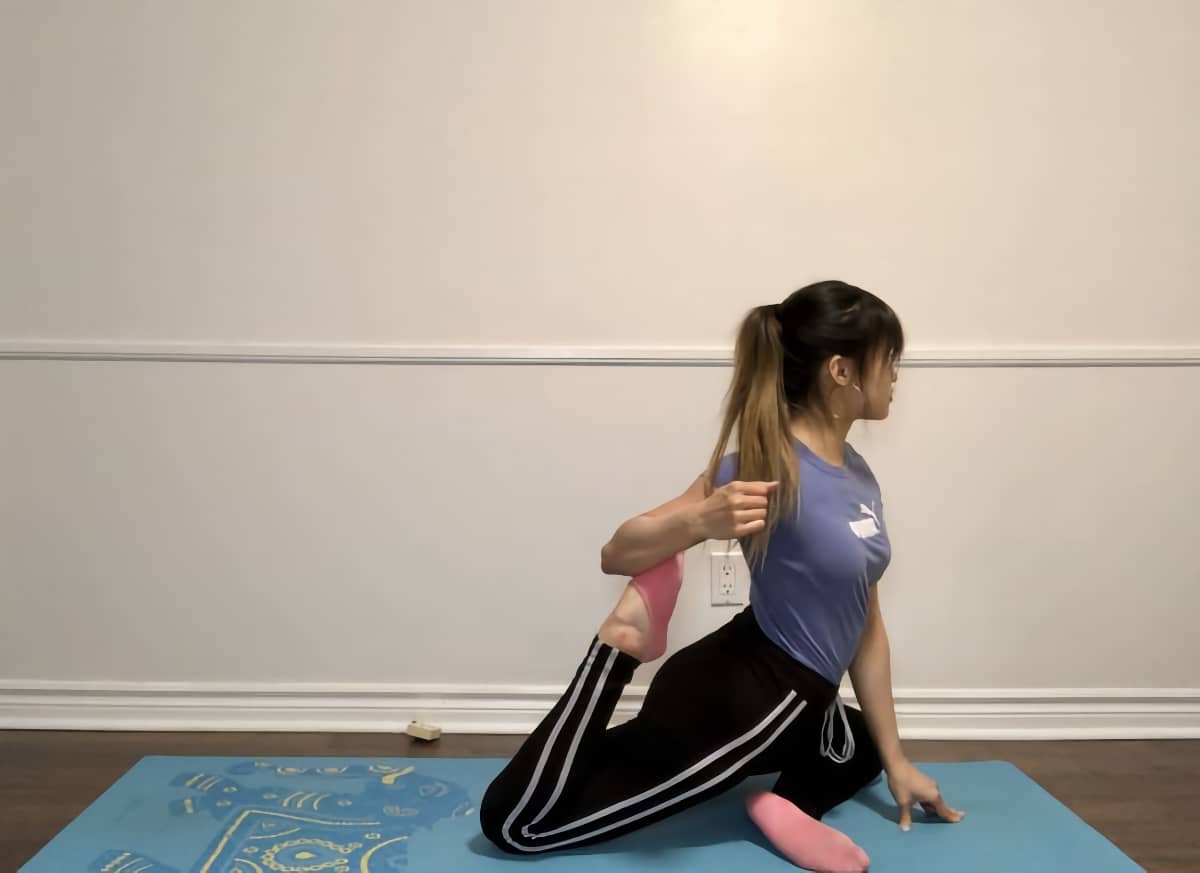- Тянитесь торсом к бедру, а не к пальцам передней ноги