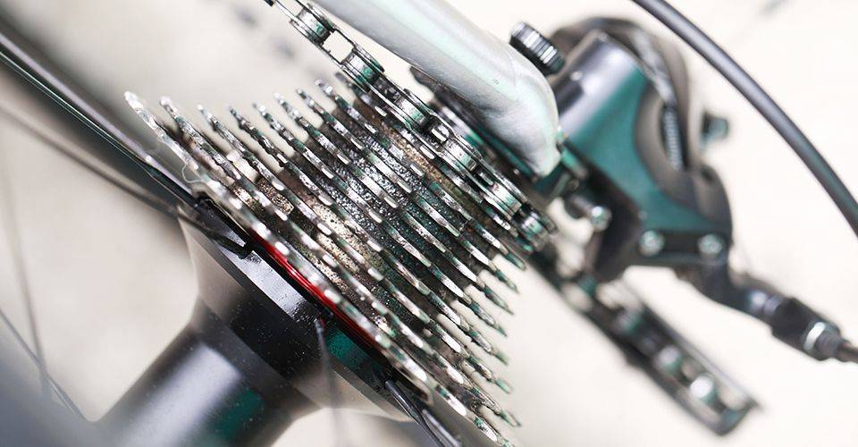 - Смазать систему. Иногда причиной неправильной работы велосипеда становится не только отсутствие смазки, но и её обильность.