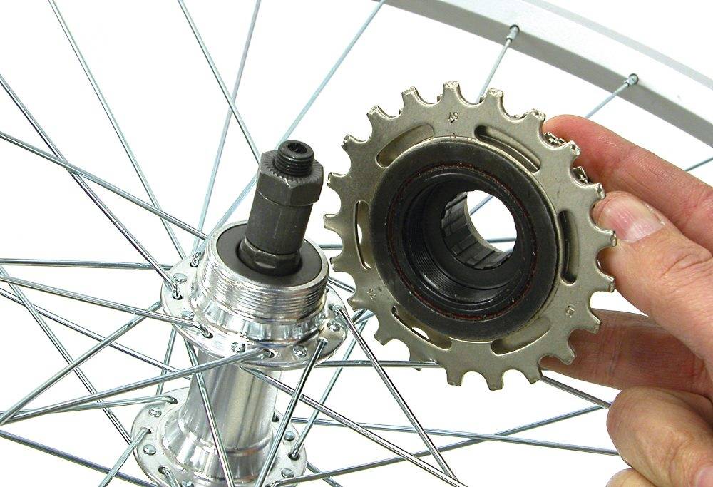 - Установке спицы. Без вынимания трещотки не получится заменить погнутую или сломанную спицу на заднем колесе.