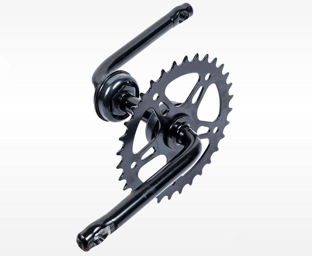 - если велосипед комплектуется неразборной конструкцией шатун – звезда. Данный вариант является наименее практичным, так как при замене звезды придется также снять и заменить оба кривошипа;