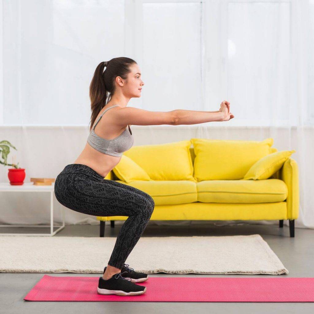 - приседания помогают мышцам разогреться. Ноги поставить на уровне плеч, а ягодичную область отвести назад. После этого сделать пульсирующие движения: присесть и слегка подняться;