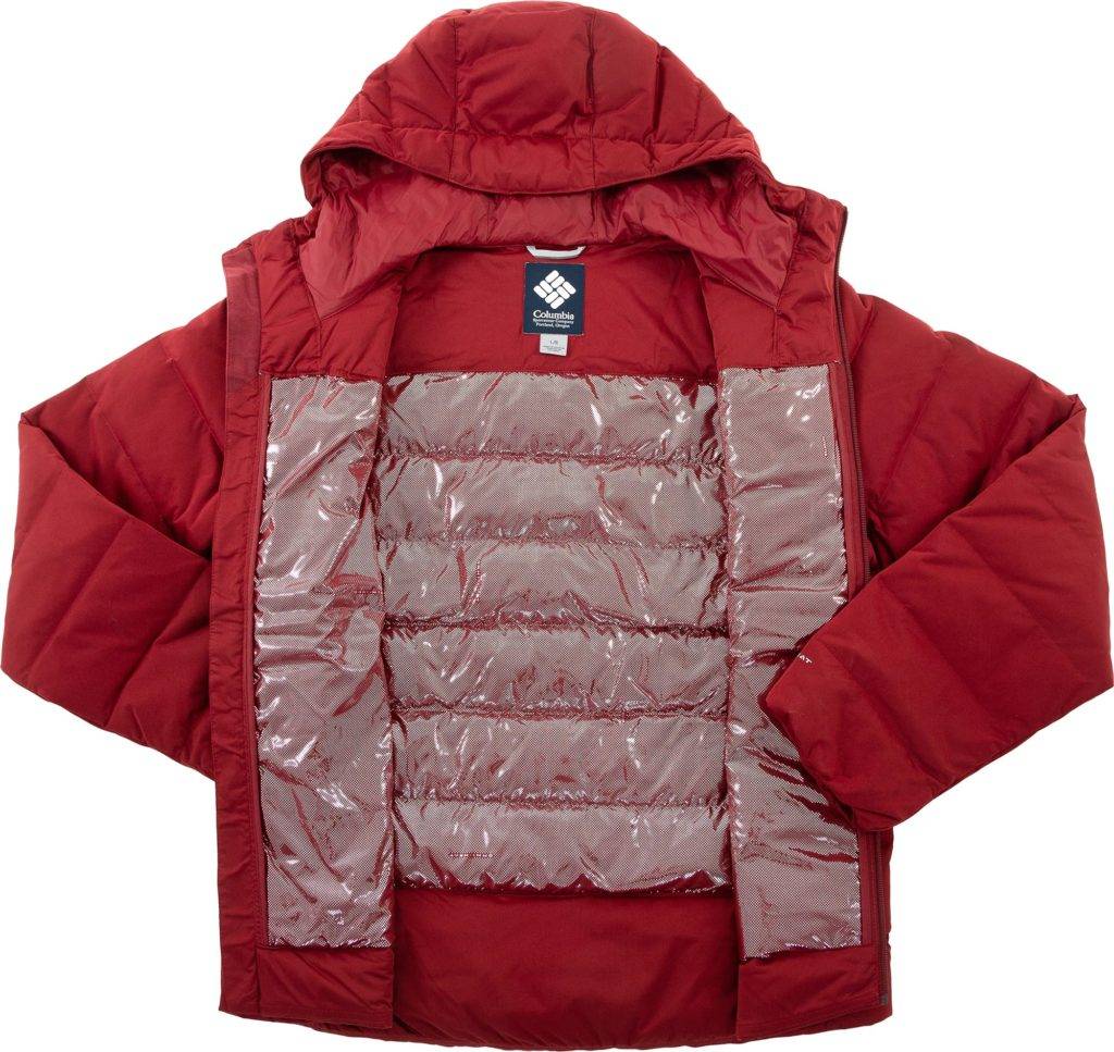 Верх горнолыжных пуховиков обычно мембранный с величиной пор 0,1–1 мкм. Это плотная стабильная ткань. Но также используют полиэфир, нейлон, полиэстер: такие материалы устойчивы к растяжению и не сминаются. Низовой слой прикрепляется к следующему аккуратной лентой из синтетического полимера. Благодаря чему испарения беспрепятственно выходят наружу.