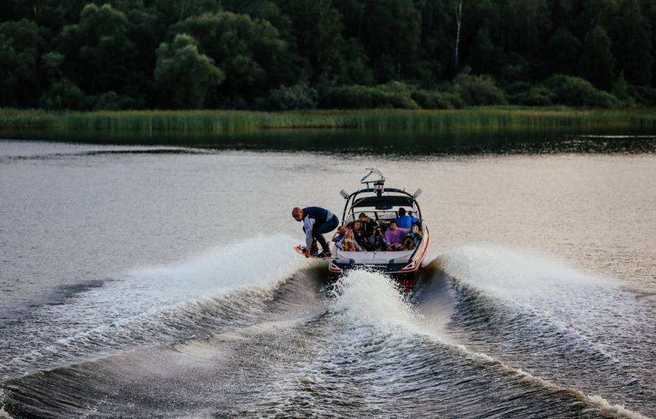 Обычная не подойдет – лодка для вейкбординга имеет мощный двигатель для быстрого ускорения и конструкцию крепления лебедки. Лодки сконструированы так, чтобы реже отрываться от воды во время движения. Таким образом позади катера лучше формируются волны.