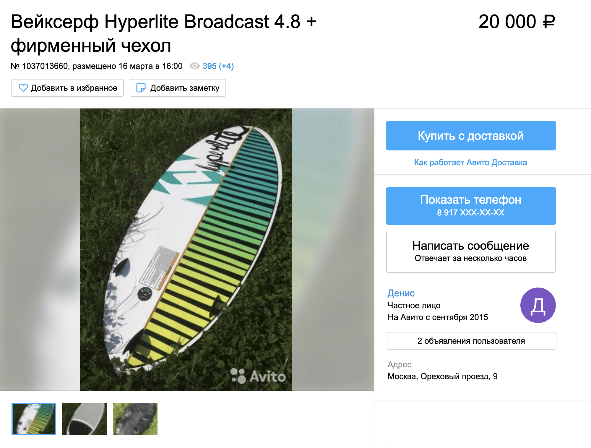Цена вейксерфа зависит от бренда и сезона. Выгоднее покупать в конце сезона: в августе магазины стараются избавиться от летних досок и дают большие скидки. Также можно сэкономить, купив вейксерф на «Авито». Но это редкое увлечение, поэтому выбор там небольшой.