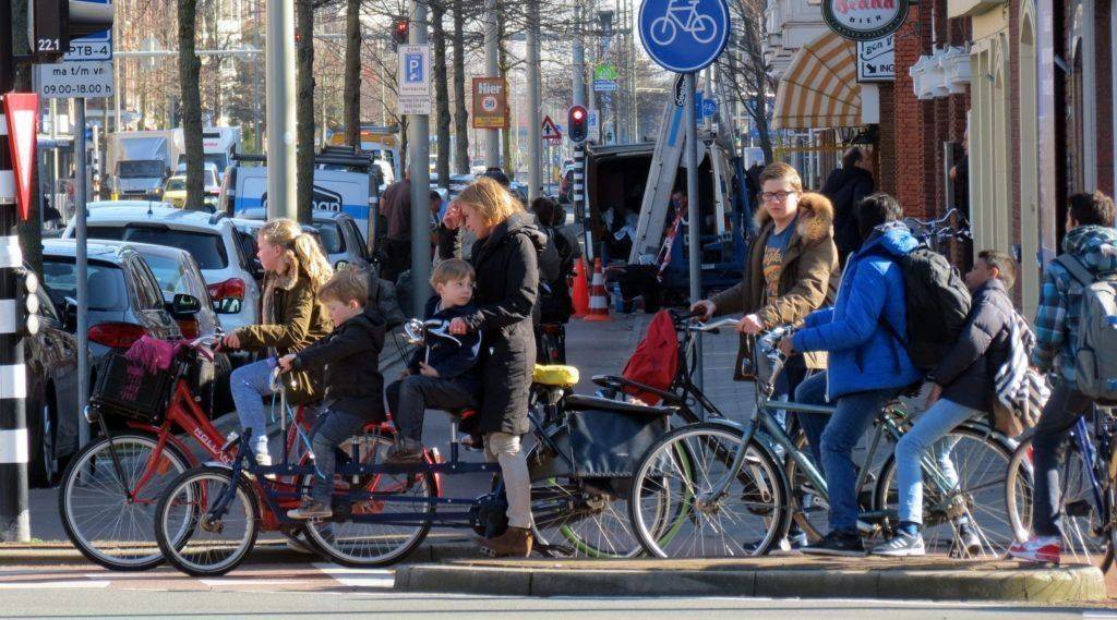Как и в первом случае, ребенок сидит перед велосипедистом.