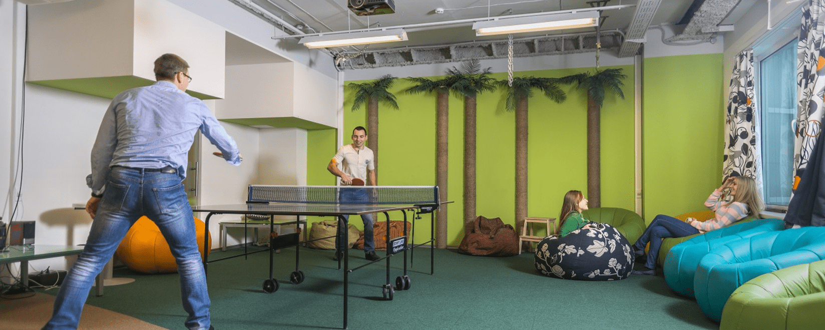 Главный офис компании оснащен несколькими игровыми комнатами, читальным залом. Все они дизайнерски оформлены в разных стилях: экзотическом, морском и книжном.