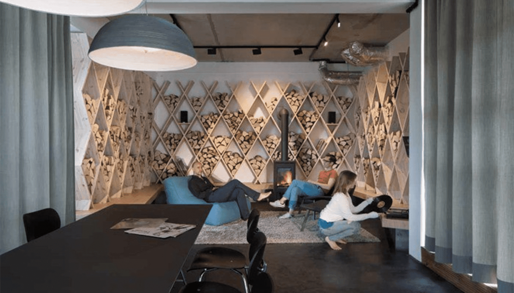 Офис популярной онлайн-платформы в Берлине включает лаунж-зоны, каминные комнаты и зал со звукоизоляцией, где можно даже с комфортом поспать в абсолютной тишине.