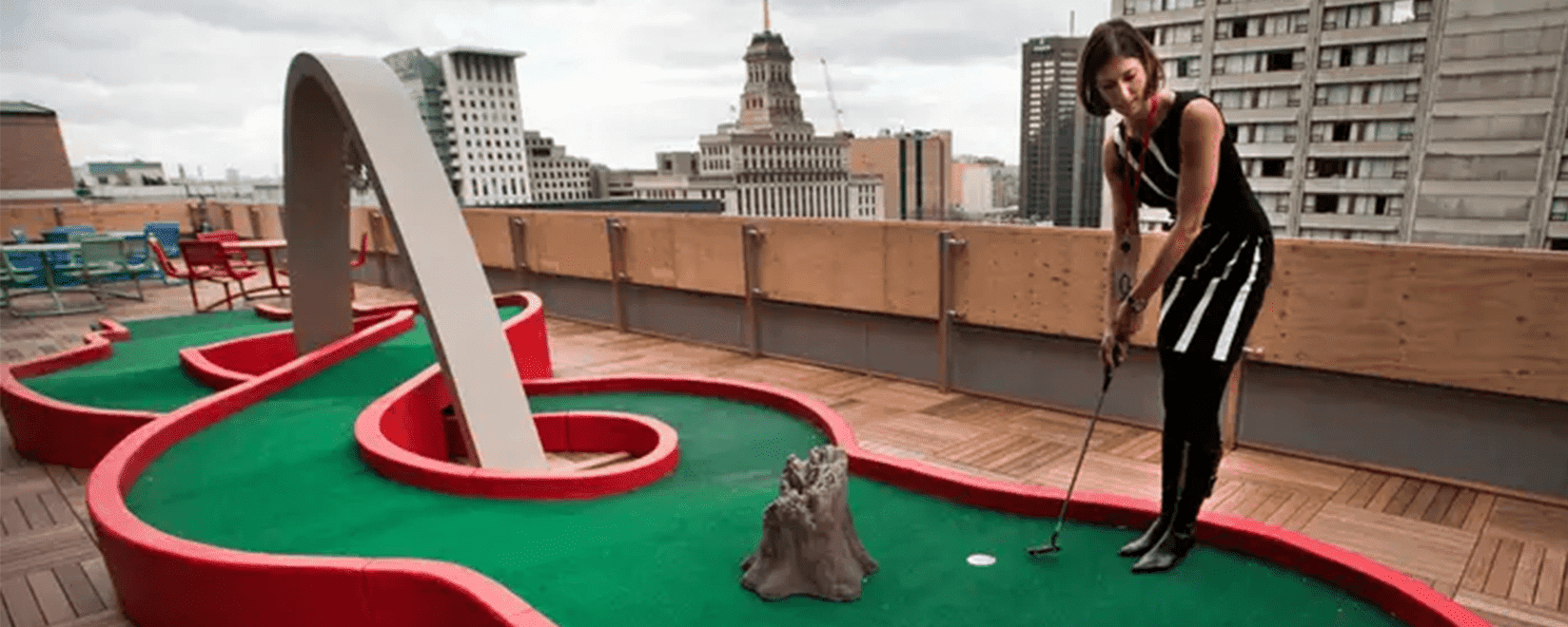 Сотрудники компании в Торонто (Канада) в перерывах между работой могут даже поиграть в гольф на крыше здания, правда в миниатюрный.
