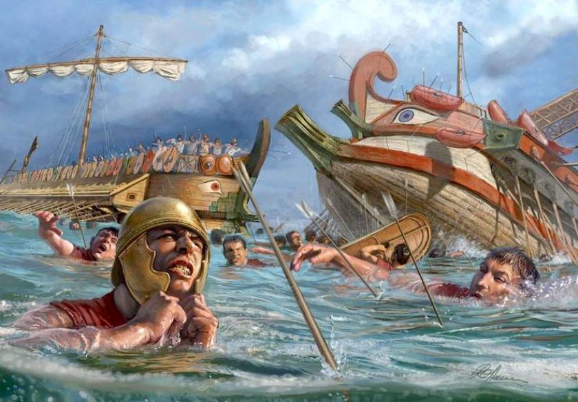Для уничтожения десанта Карфаген подготовил свой флотон решил, используя таран, главный удар нанести по транспортам с десантомРимский флот сильнее! Хорошо оснащённые римские корабли имели преимущество перед финикийскими. Сюда же нужно отнести отлаженную технику абордажного боя и хорошую дисциплину каждого воина.