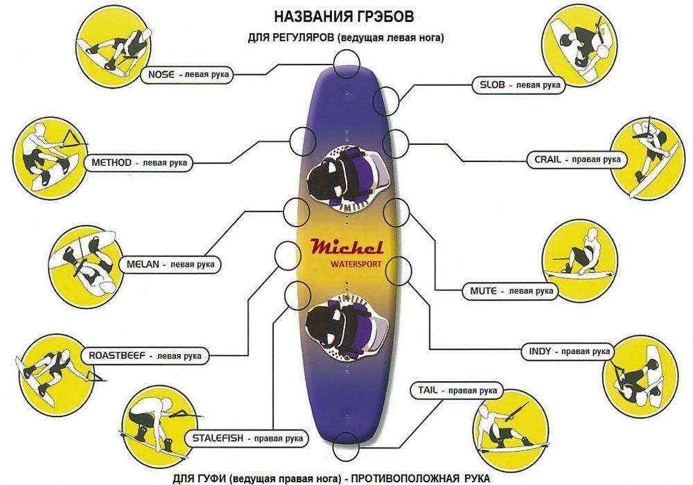 Грэб — это то, что помогает спортсмену определить, какой стиль ему нравится больше всего. Выполняя грэб, вейкбордист держится за доску рукой в каком-то определённом положении.