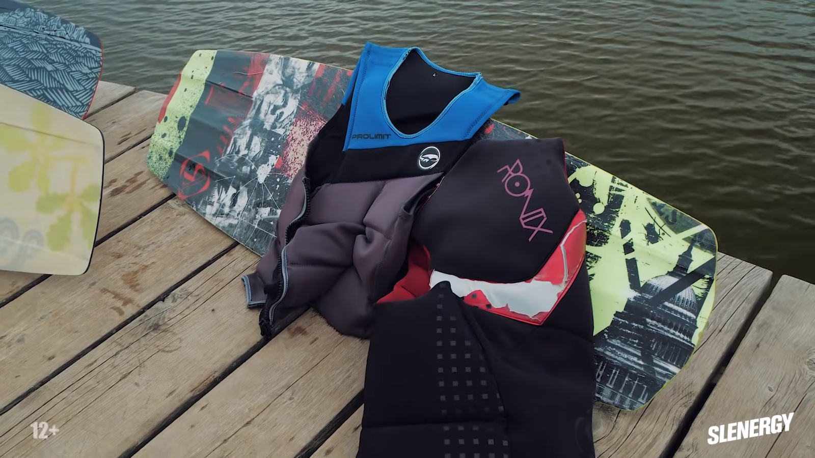 Спасательный жилет для вейкборда – это необходимый элемент вашей безопасности на воде, он способен сильно снизить неприятные последствия падения, вплоть до того, что не даст вам утонуть. Потому он должен быть мягким, не стеснять свободу движений, быть рассчитанным именно на ваш вес и размер. Материалами для изготовления служат неопрен и нейлон.
