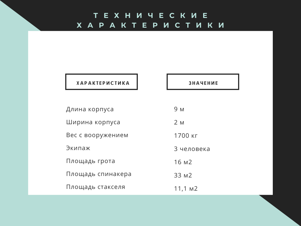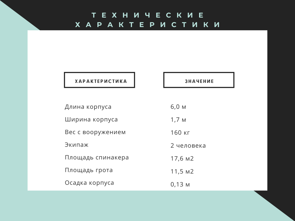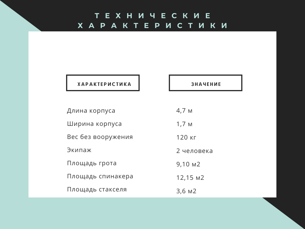 «Летучий голландец» является 20–ти футовым высокоскоростным гоночным монотипом за счет большой парусности и хорошей системы окренивания. Тип парусного вооружения: бермудский шлюп. «Голландец» намного тяжелее в управлении, по сравнению с «470-м» швертботом, поэтому экипаж нужен для него более тяжёлый и атлетический.