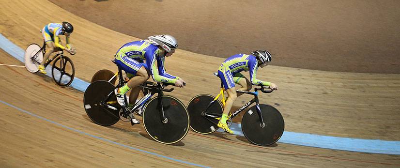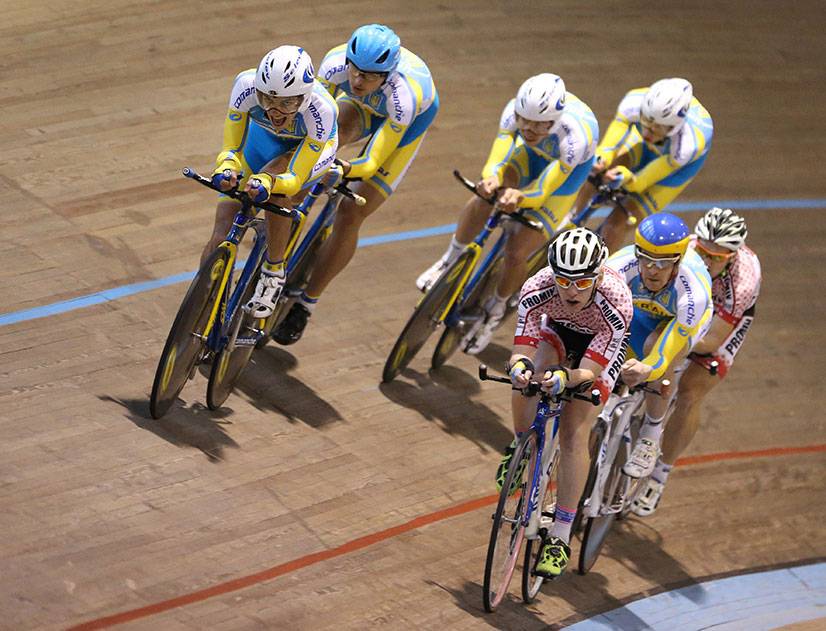 Считается очень сложным видом. Команды из 4-хчеловек на 4-х километровой дистанции. Старт дается на середине трека по разные стороны. До финиша должно доехать минимум трое, а время берется по последнему в тройке.