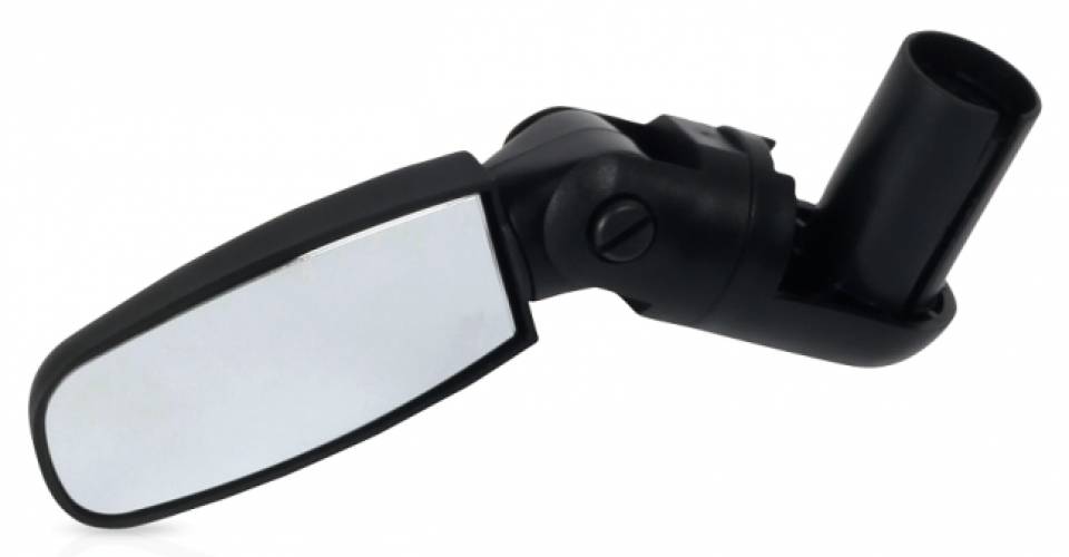 Зеркало в сложенном виде. Данное положение актуально в момент парковки или во-время езды в случае отсутствия его необходимости. Такая гибкость также снизит шансы его повреждения в момент падения велосипедиста в отличии от жесткой конструкции.