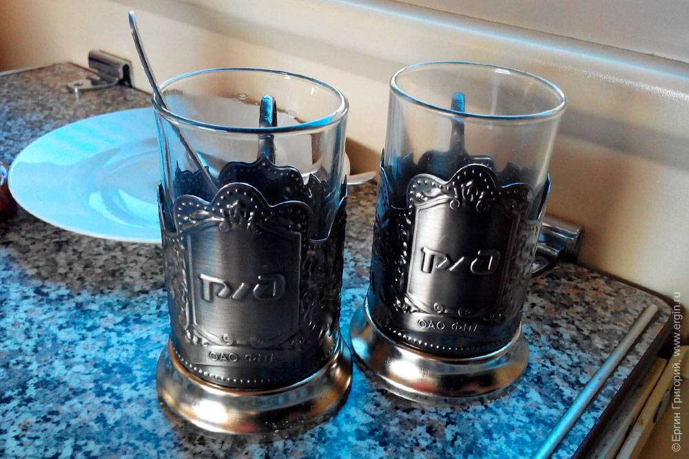Стаканы в подстаканниках в поезде:
